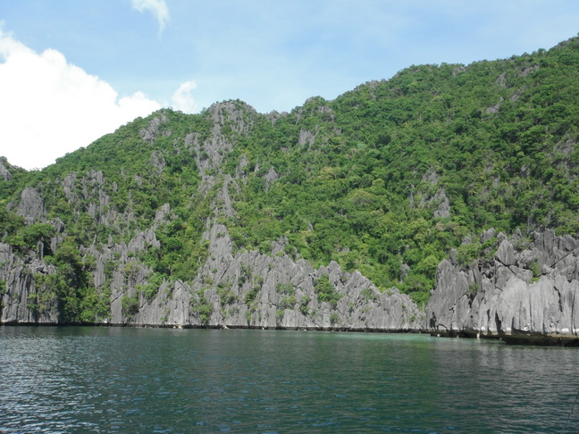 After maybe 30minutes, we are off to our last stop - the twin lagoon. The first lagoon was where our boat was docked, while the second one was on the other side. The waters of the lagoon was cold and deep that it was unsafe to bring a camera. Our tour guides advised not to stay too close to the rocks because they are full of sea urchins. I really fear sea urchins. I hate them. So I decided not to go to the other side. I am left in the boat and just enjoyed looking at them and taking pictures. To go on the other side, you must climb up the stairs between the mountain (ih high tide) or if low tide, you can swim beneath the rocks which is too scary. But my companions are just into diving so they decided to go there. When Ronnie, Drew and Linda came back, they said they saw many jelly fish and didn't bother to stay long. I wonder how Pat managed to stay they for almost 30 minutes. He really enjoyed it and wanted to stay longer but we can't. Around 5pm, we decided to go back and finish the trip.